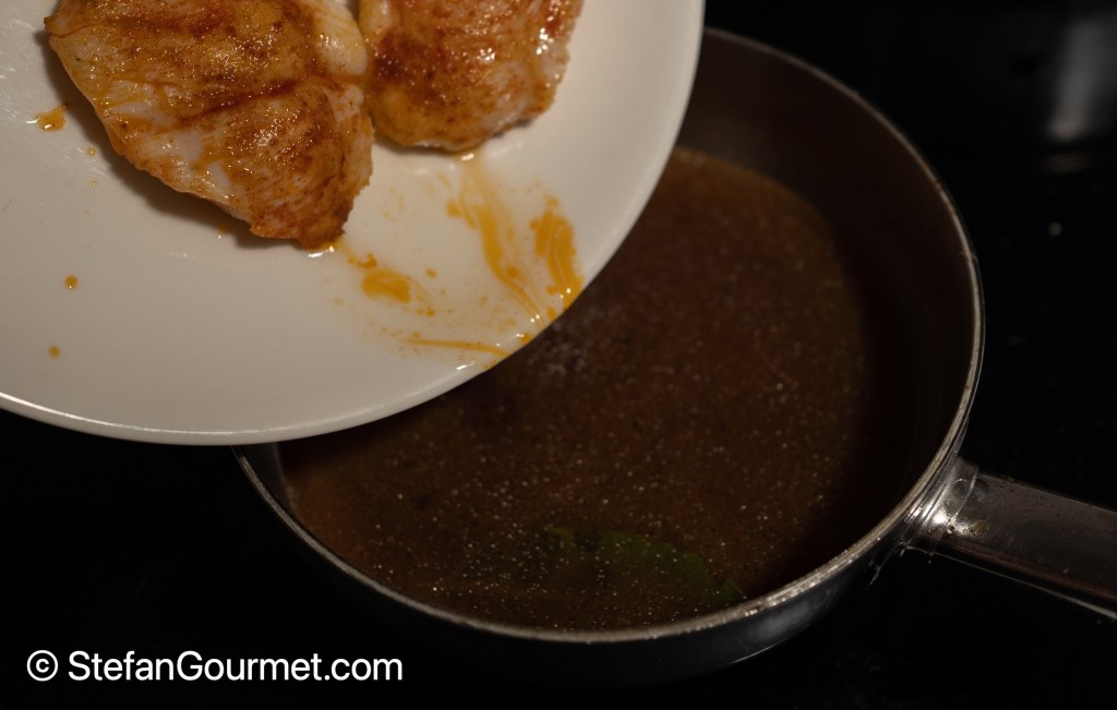 …and the juices that will have leaked from the seared monkfish.