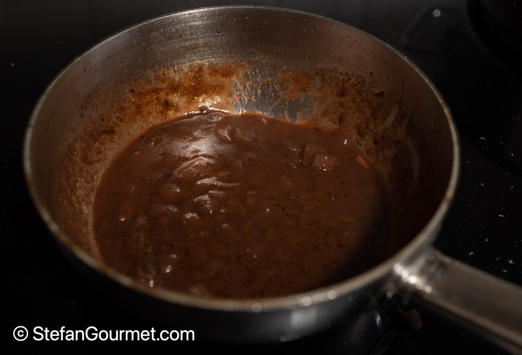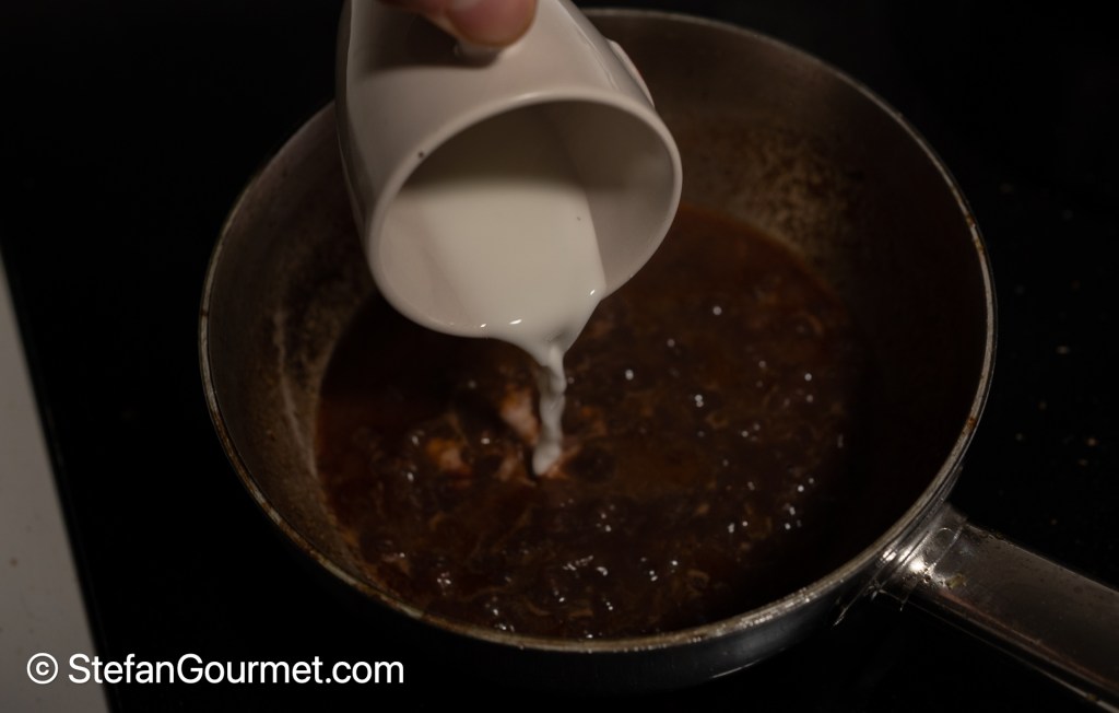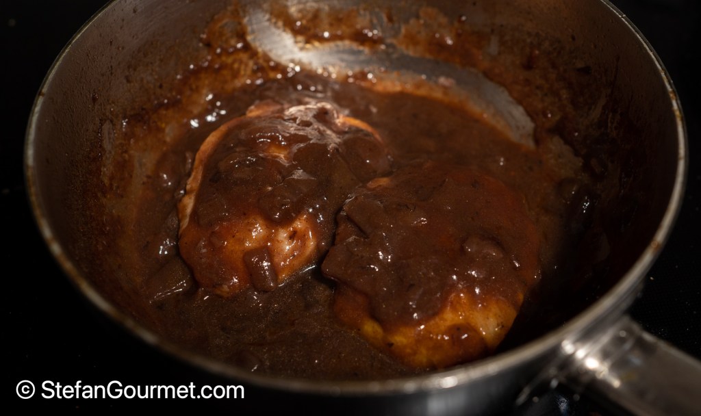 (Reducing by half ensures that the alcohol has burnt off.)