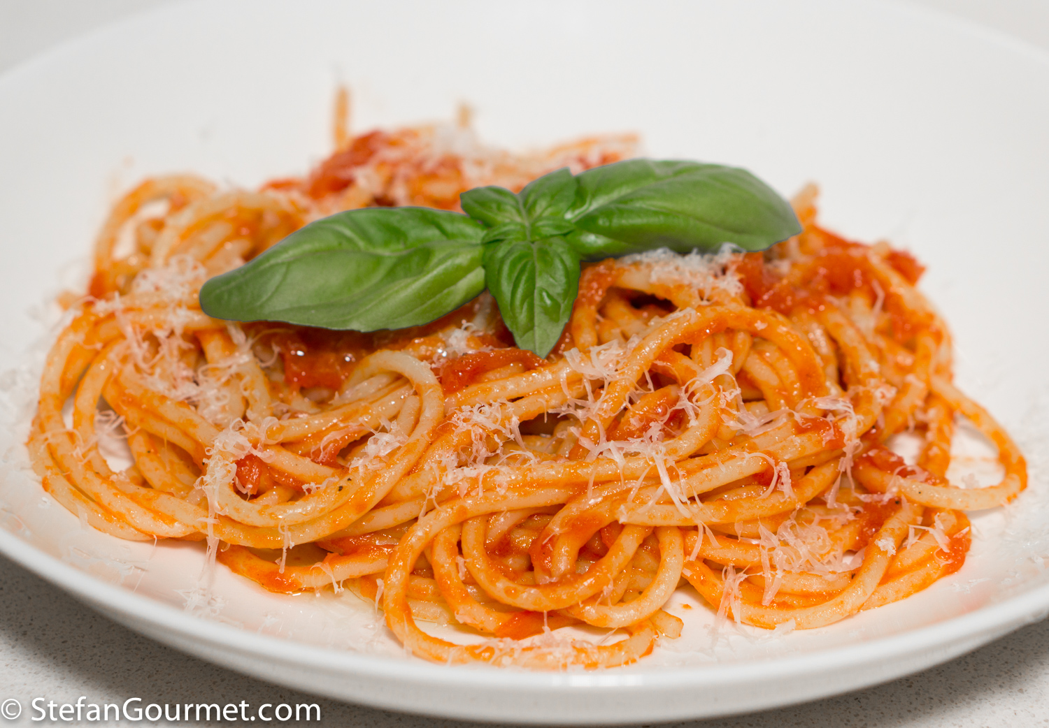 Because it is such a light wine, the first dish I tried was a simple but delicious spaghetti al pomodoro. The pairing was good in that the wine and the dish co-existed, but there was no interaction (*** for the pairing).
