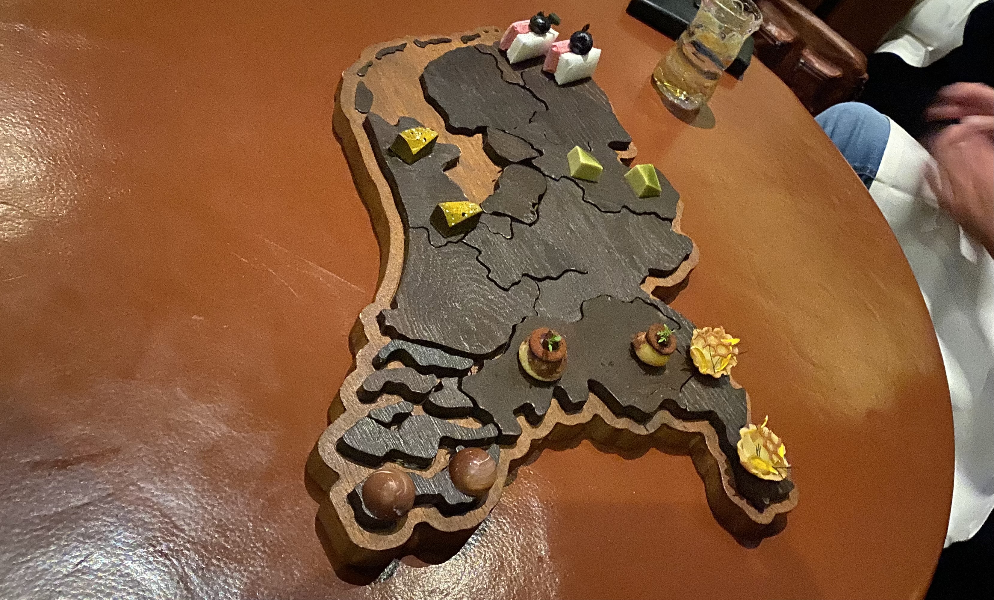 The petit fours were served on a map of the Netherlands. There may have been a connection between the sweets and the provinces they were served on, but by then I had had too much wine to pay attention to that.