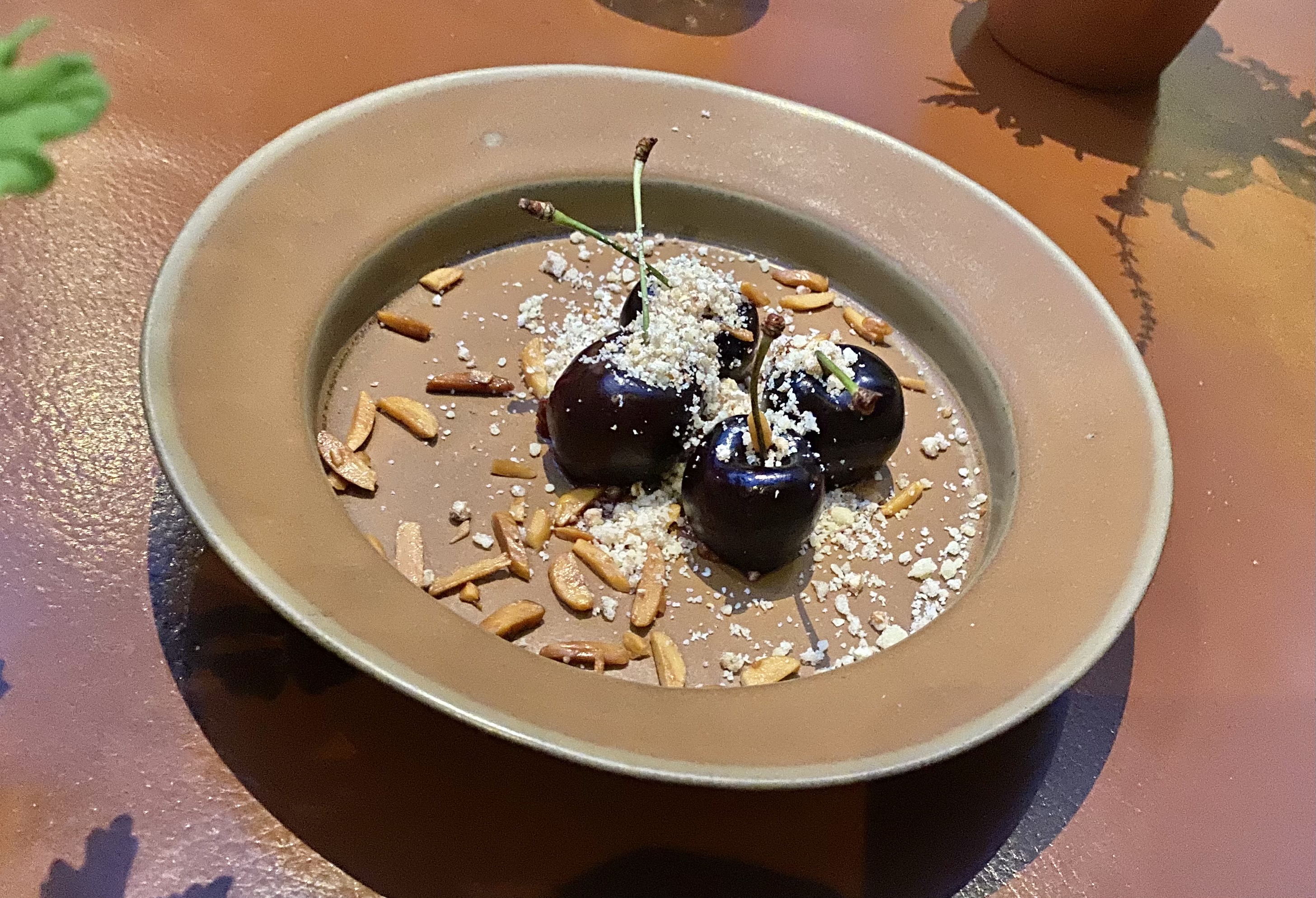 The dessert was cherries with almond and meadowsweet.