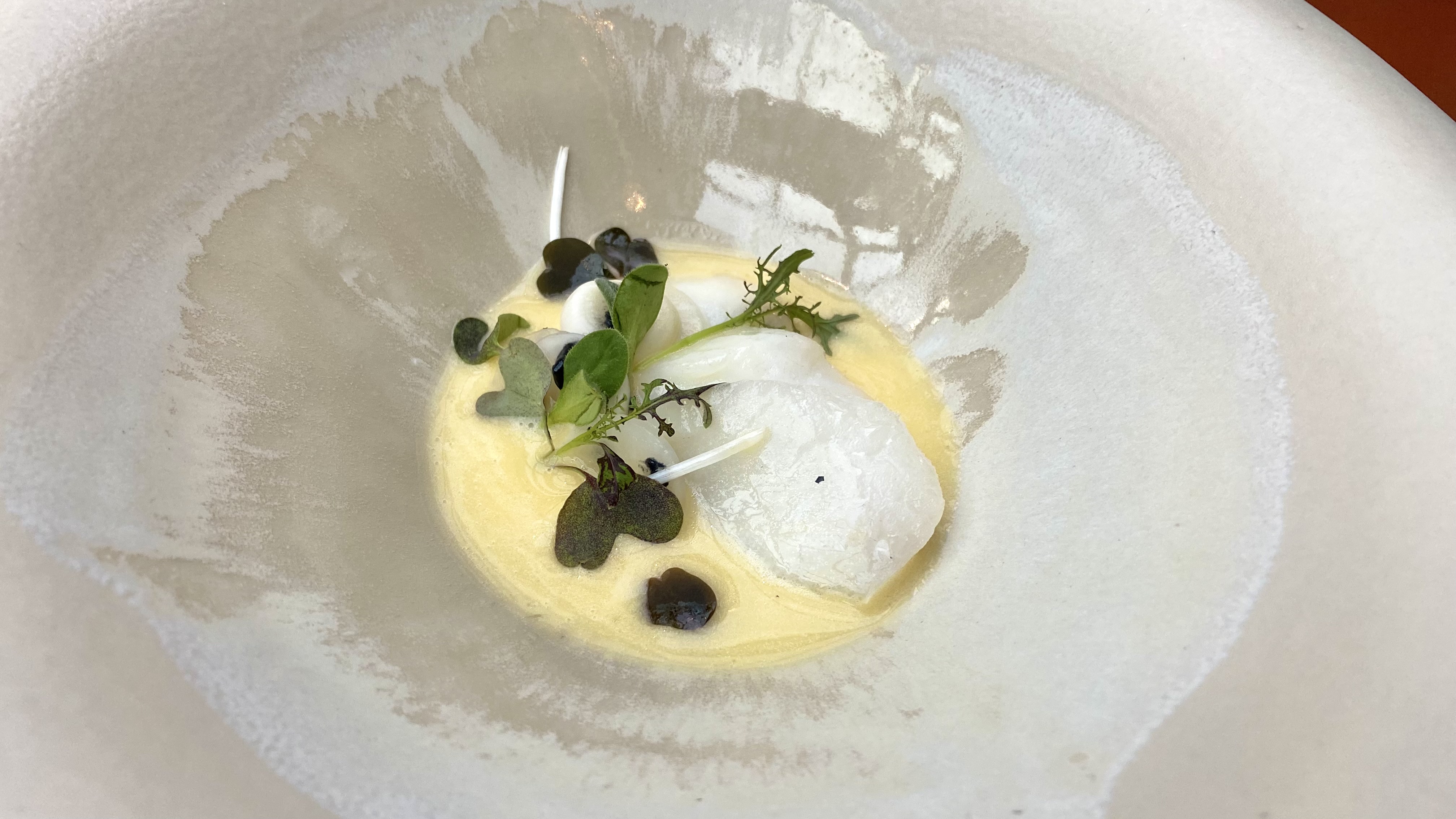 Yellowtail shabu shabu, with the yellowtail cooked tableside in mushroom stock. A very elegant dish, paired perfectly with a Chardonnay from the Upper Hemel en Aarde Valley in South Africa. 10/10