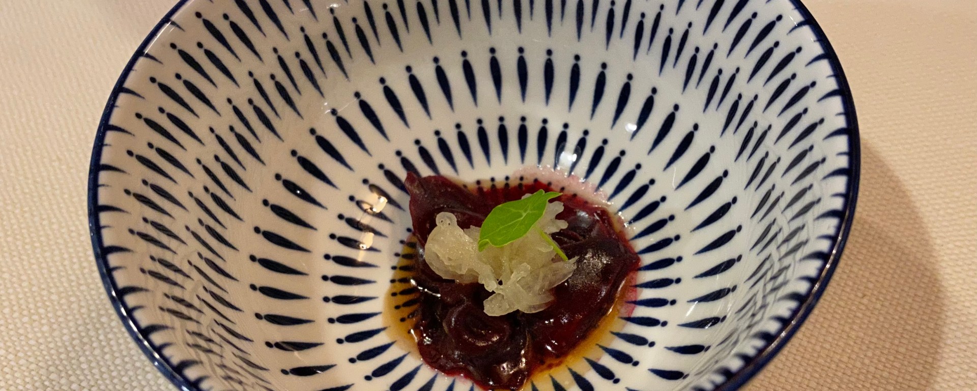 Like many other restaurants, at Laite the lockdown has been used to experiment and develop new dishes. Next to the 9-course degustation menu of more traditional dishes (Asou, 95 euros) there is now a 13-course degustation menu of more inventive dishes (Plissn, 130 euros). We opted for the latter, with wine pairing (50 euros).