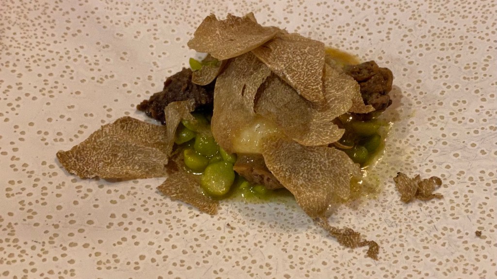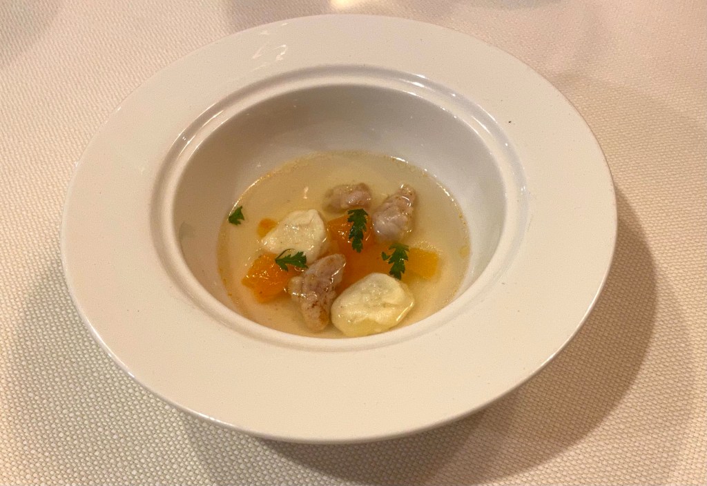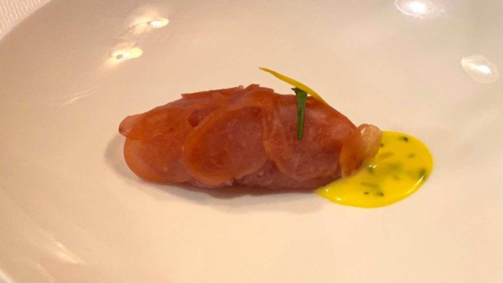 The same rosé was also a great pairing for sweetbread in sweetbread broth with puffed gnocchi, pickled melon, and salmon caviar. This was probably the best sweetbread dish I’ve ever had. 9/10