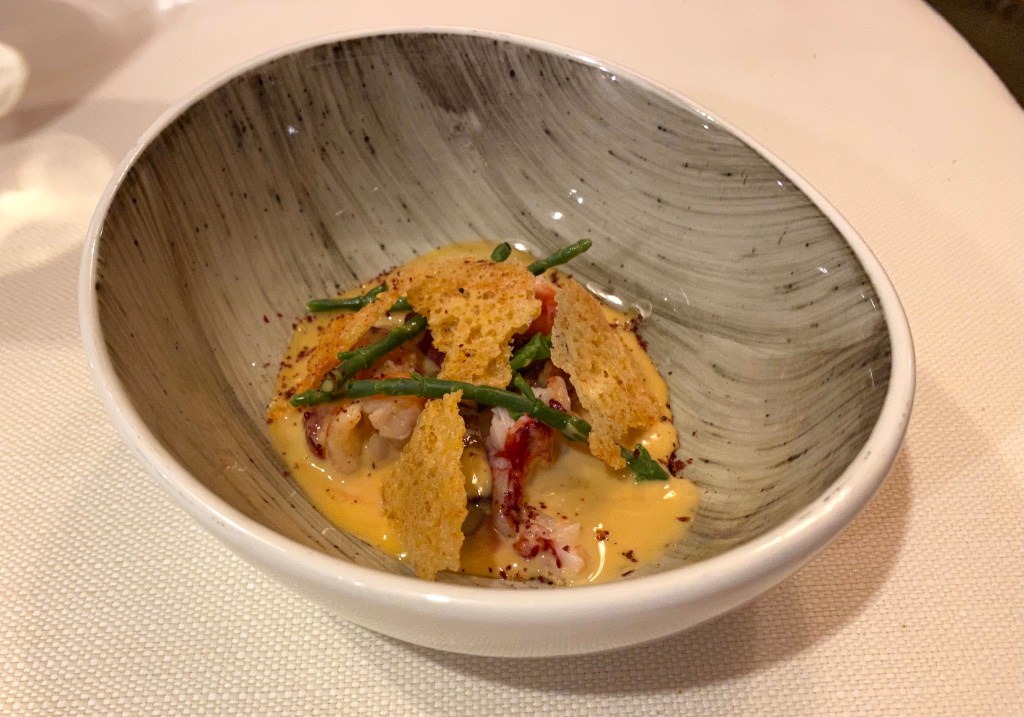 …which was lobster with coconut milk, samphire, chicken livers, and summac. This flirts with a Thai curry without the chillies, and the chicken livers (cooked medium rare) were a really nice touch. 9/10