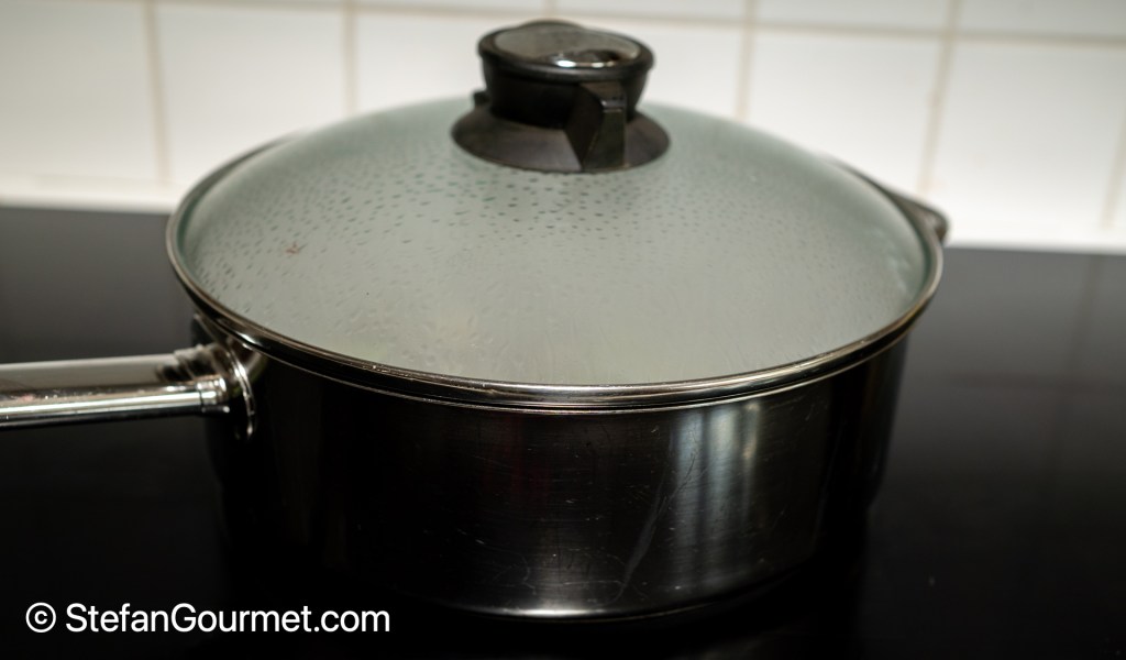 Cover and bring to a boil over high heat.