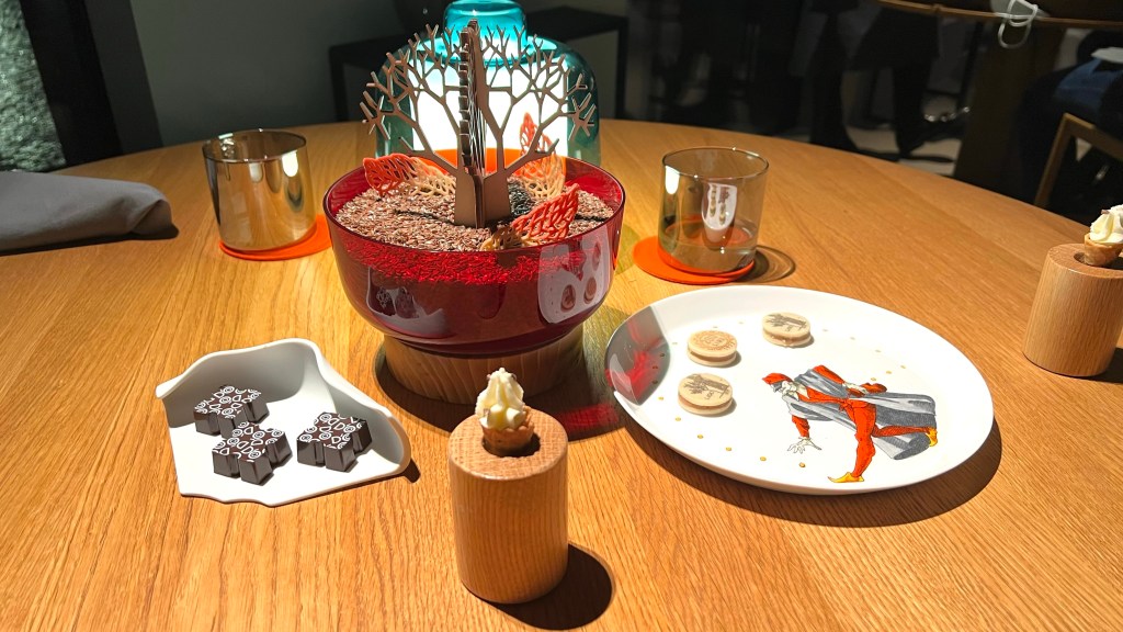 Another original idea was the candle of bees wax, that was actually lit to make the wax melt. I didn’t realise we were to be eating the wax, so I failed to take a photo of the burning candle. The wax is eaten with the fluffy bread that was served besides the licking plate. Although this was also very original, the flavor wasn’t that noteworthy.