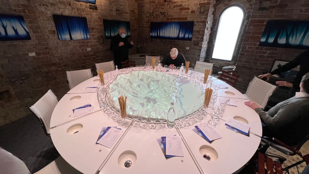 The next day started with a visit to the Enetoca Regionale del Barbaresco, where we had an explanation about Barbaresco in the very nice tasting room located in the characteristic tower in the village of Barbaresco (you can hardly see the tower in the photo because of the fog).