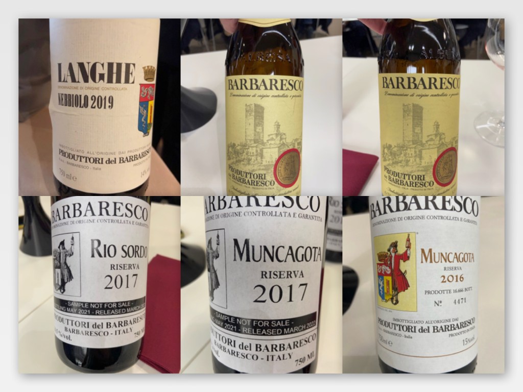 The 2017 riservas did not have an official label yet, because they will be bottled and released in February 2022. These were barrel samples that were bottled just for us to be able to taste them. In 2018 the cru were not bottled separately, and so those grapes (of higher quality) were used for the regular Barbaresco. This means that even though 2018 was not an exceptionally good year, the regular Barbaresco may even be better than in better vintages. I thought the 2018 was very nice with velvety tannins, whereas the 2017 had harsher tannins. The Rio Sordo MGA is located close to the river and is therefore known to be the most elegant of the crus made by the produttori. The Muncagota is further from the river and at a higher altitude. Even though it is only 200 meters away from Rio Sordo, the 2017 Muncagota clearly has a fuller body and is more like a Barolo. The 2016 is from a better vintages with a larger difference between day and night temperatures (important for aromatic expression), but right now the 2016 Muncagota appeared closed and difficult to enjoy.