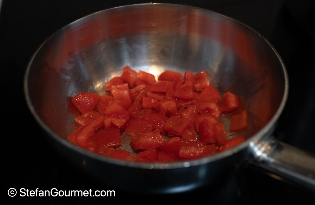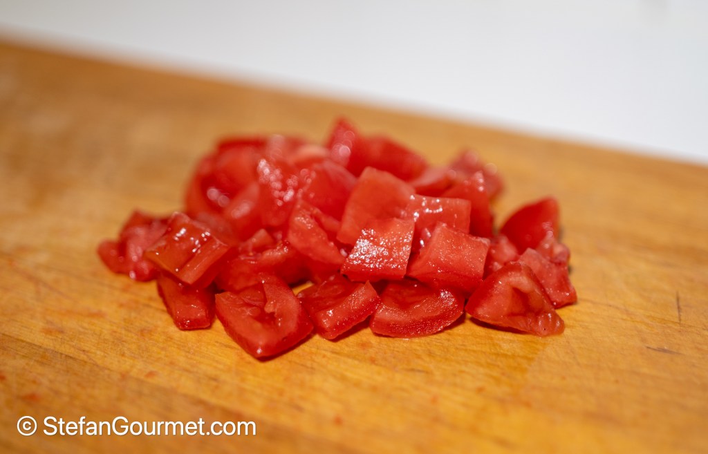 Turn the tomatoes into concassé while the ramekins are baking, as described in this recipe.