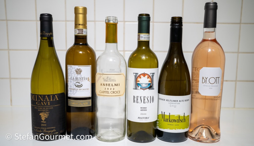 - Orsolani, La Rustia Erbaluce di Caluso 2022 (100% Erbaluce, Piemonte, Italy): wine is a bit too powerful and too astringent for the dish, but improves with additional salt and pepper on the dish