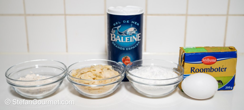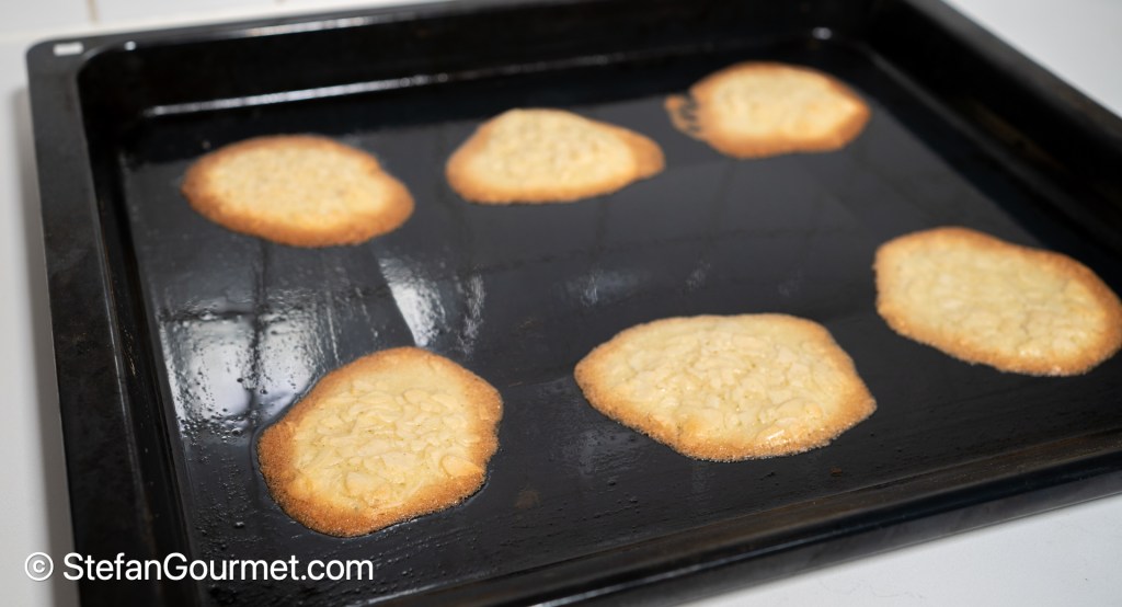 This recipe is quite easy, as long as you butter the baking sheet properly and leave a lot of space between the cookies on the baking sheet. How crispy the amandelkrullen will turn out and how long they will stay crispy, will depend mostly on the ambient humidity. The recipe will also work with gluten-free flour.