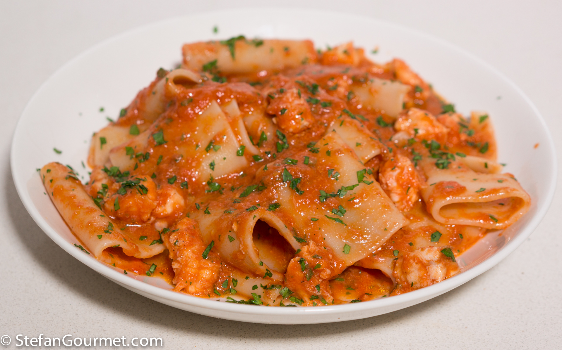 Paccheri with monkfish ragù is a simple yet delicious pasta dish.