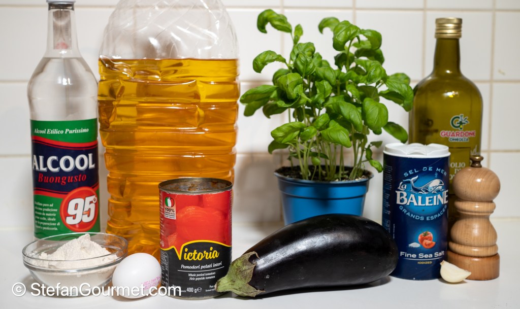 Make sure the oil is 180C/350F before adding the eggplant and try to maintain the temperature by not adding too much at once. Turn the eggplant pieces as needed until they are golden on both sides.