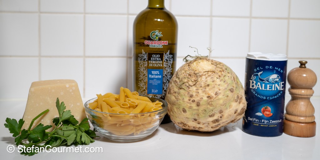 400 grams (14 oz) peeled celeriac, in large julienne about the same size as the penne