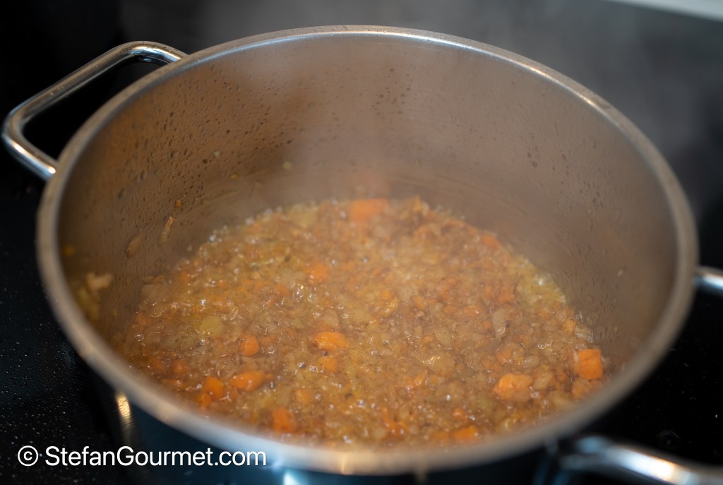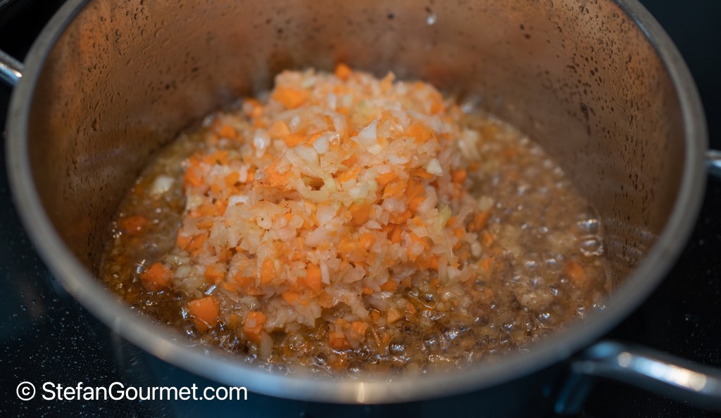 1 onion, 1 carrot, 1 celery stalk, all finely minced