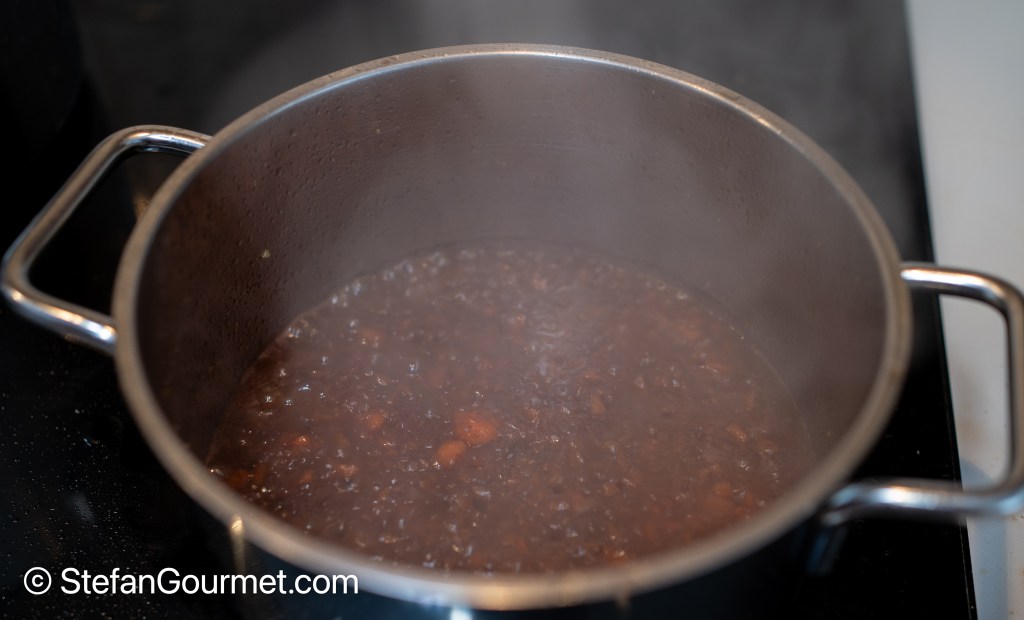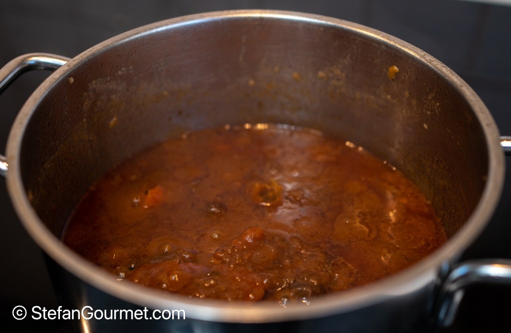 Simmer the stracotto like that over low heat until the meat falls apart, about 12 hours (!). Stir it regularly.