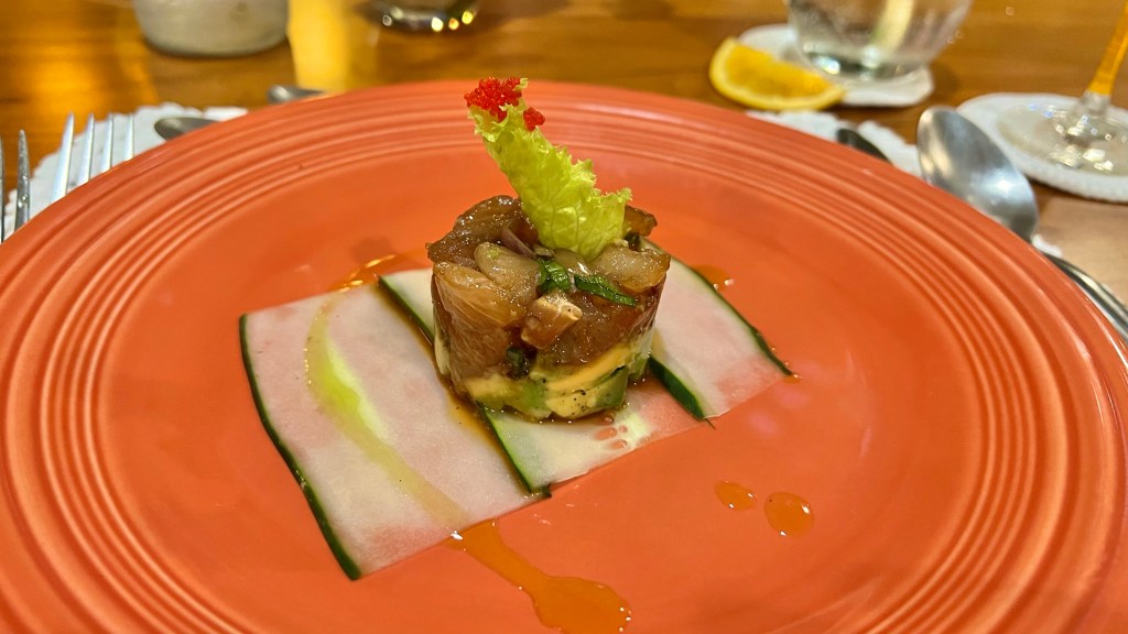 The food in Costa Rica is usually nothing to write home about, or in fact to blog about. A lot of rice and beans, and very little spices or herbs. But there are some exceptions. A hidden gem is Ubin by Keilor Sanchez, at the nYa hotel in Montezuma. Sanchez is one of the top chefs of Costa Rica, with international experience. We already had dinner there three years ago, and this time noticed the availability of a tasting menu with wine pairing. That makes it the only restaurant in Costa Rica that I have seen with either of those.