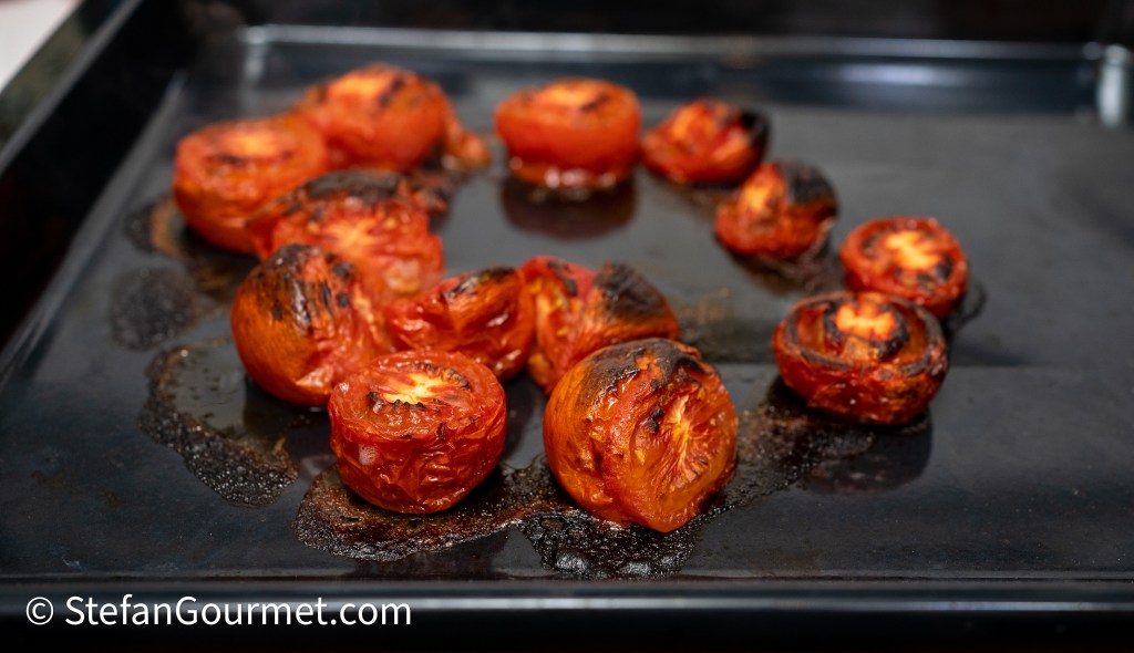 Broil the tomatoes until charred, about 10 to 15 minutes.