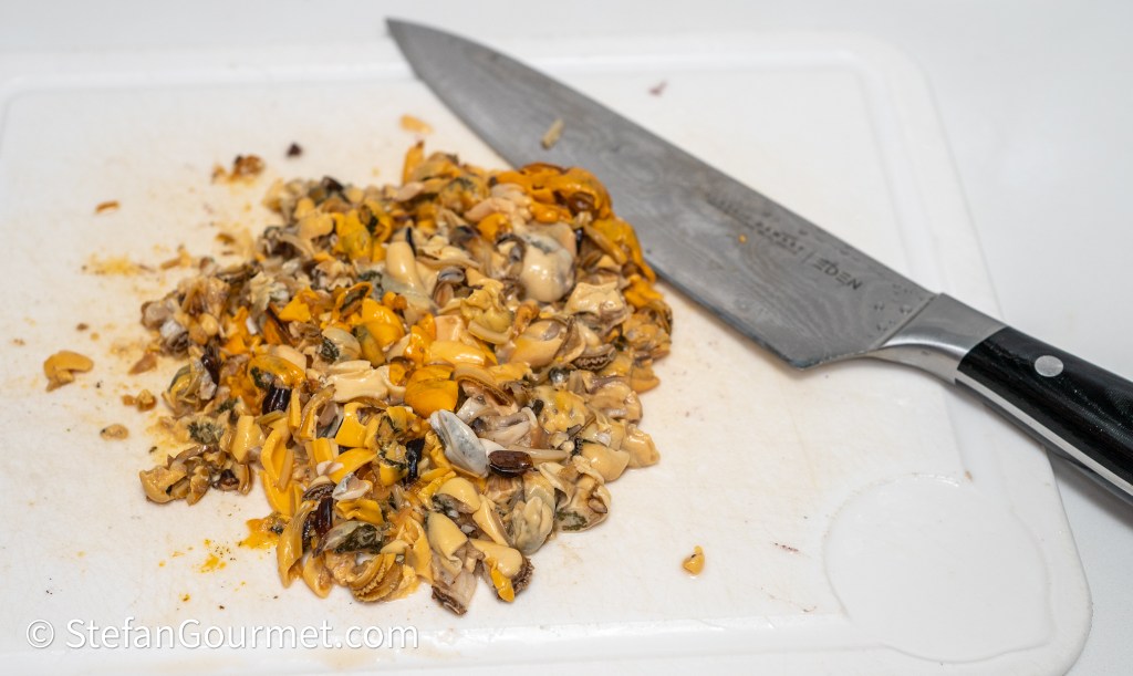 Add the chopped mussels.