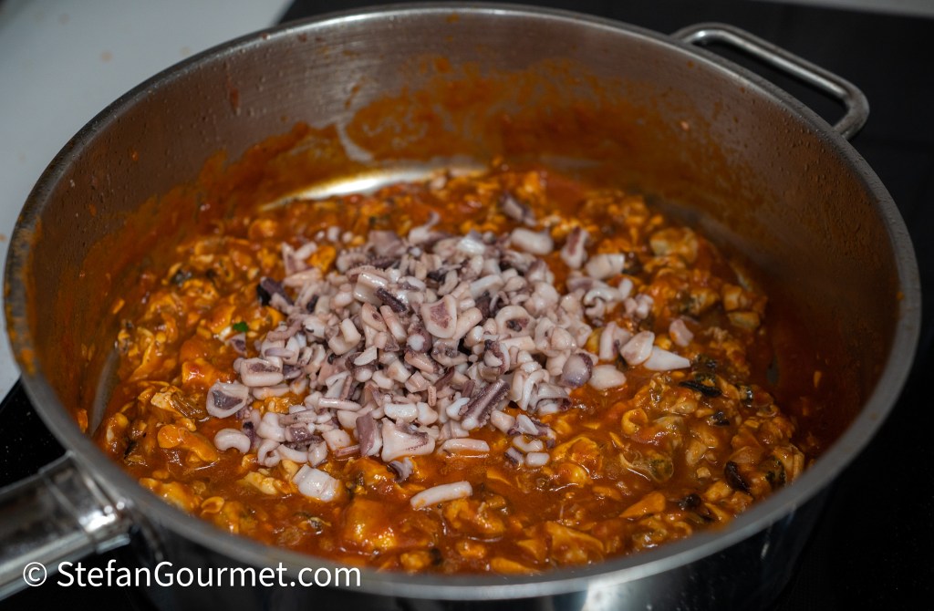 Add the squid and stir to incorporate.