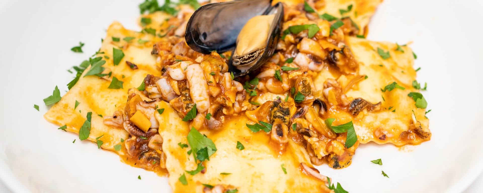 When I make ravioli, usually I put most of the ingredients in the filling and serve them with a simple sauce. But when I had ravioli stuffed with ricotta and seafood ragù at Pepe Nero, I realized that the other way around can also be very nice. And so I decided to prepare something similar. The result was very nice and I will certainly make this again.