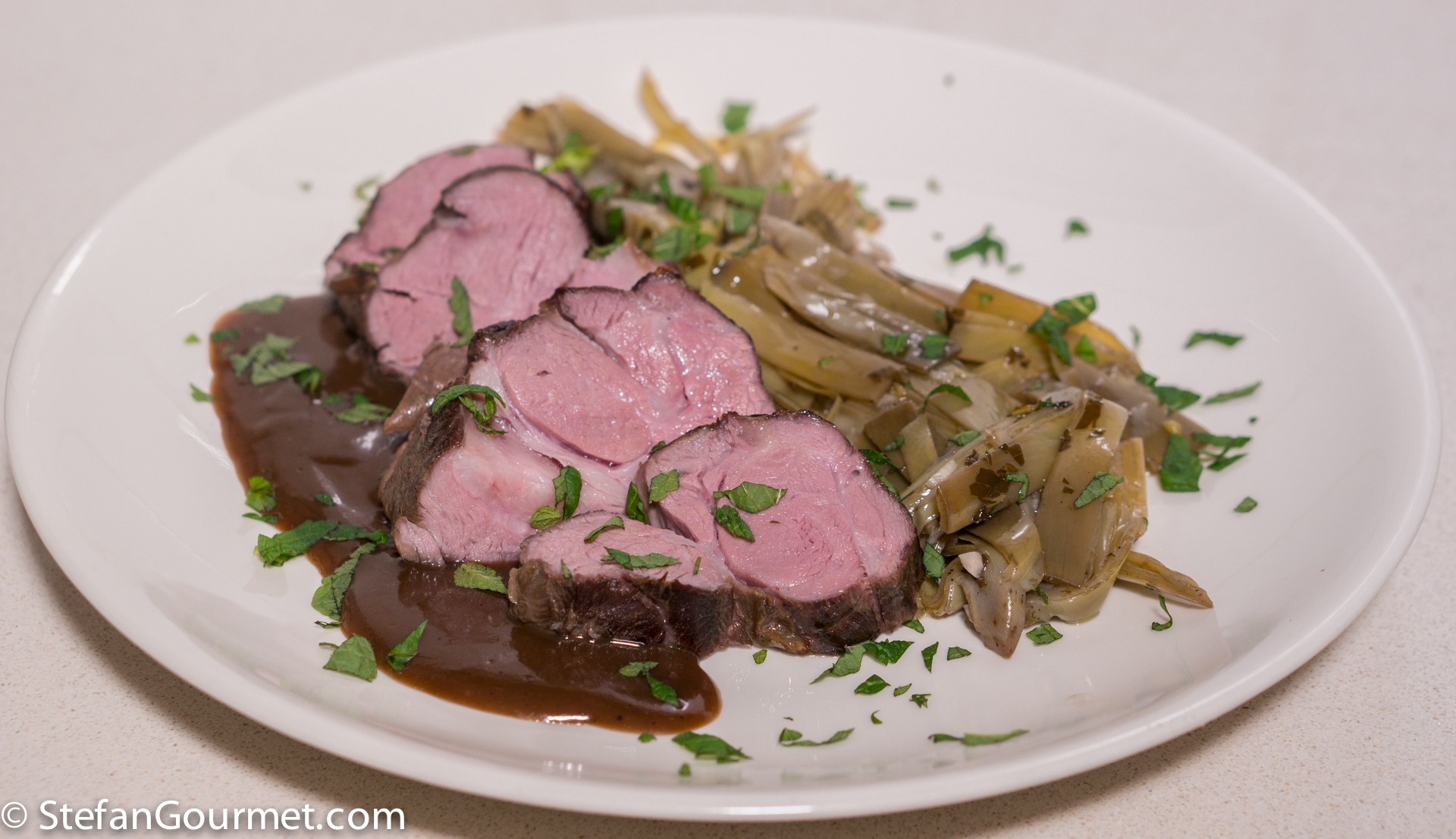 Lamb with artichokes and mint is a dish that I created because mint goes well with both lamb and artichokes.