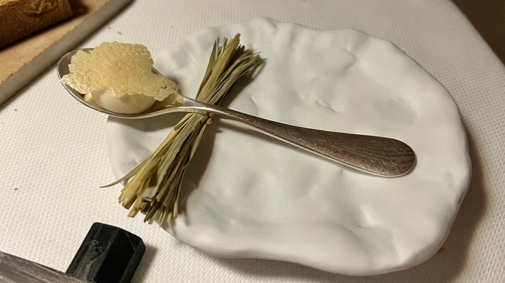 …topped with langoustine salt. It was nice, but not great and seemed to be more about the show than about the flavor.