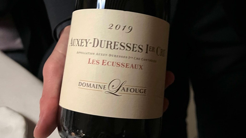 The wine for the main course was an Auxey-Duresses 1er Cru, a Pinot Noir from the Côte de Beaune in Burgundy.