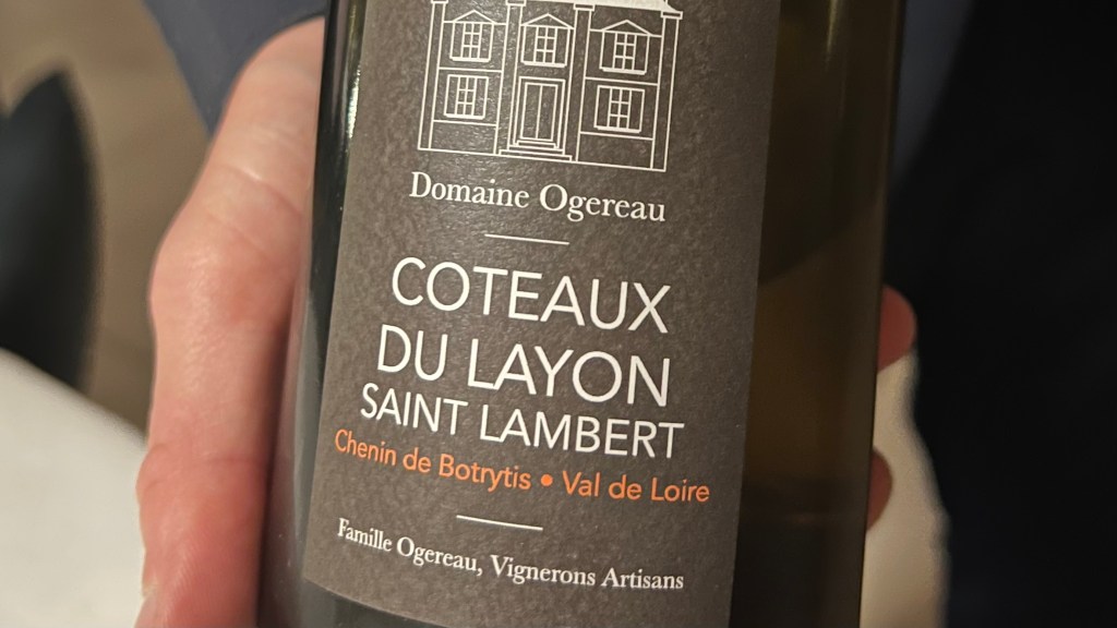 The Coteaux du Layon, a late harvest Chenin Blanc with botrytis from the Loire valley, could have been a good pairing with the dessert of rhubarb.