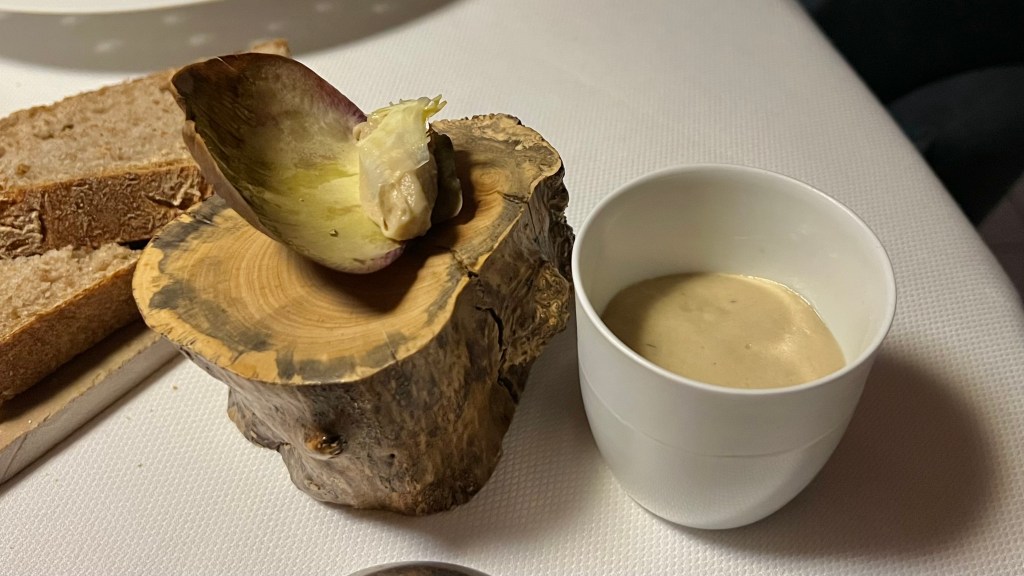 On the side was a cold artichoke snack as well as artichoke mousse. The artichoke was very nice and worked very well with the wine, which is quite a feat as artichoke is notoriously difficult to pair wines with. The John Dory was perfectly cooked.