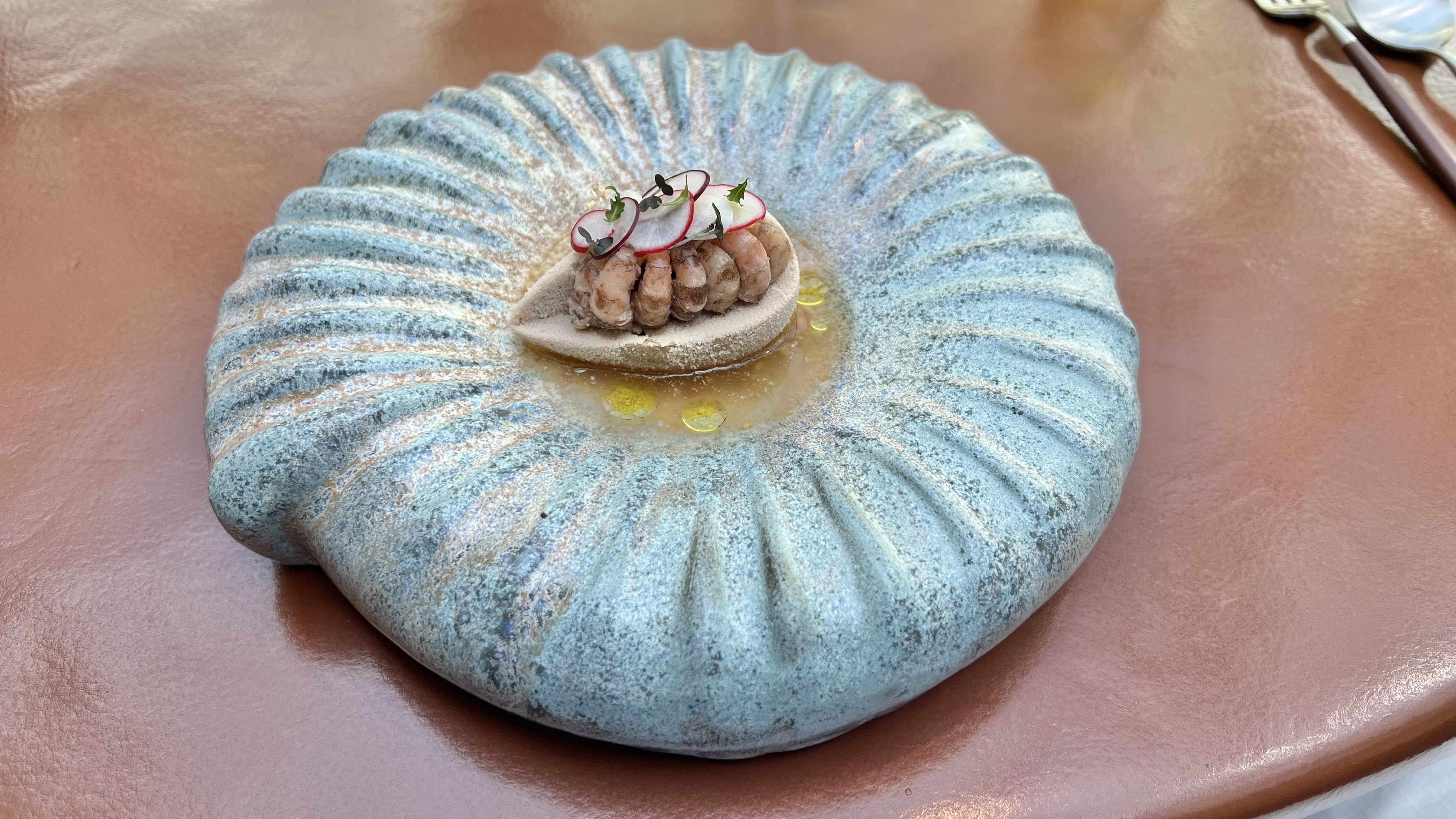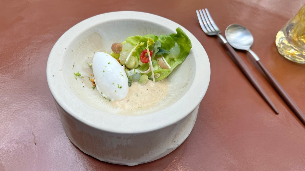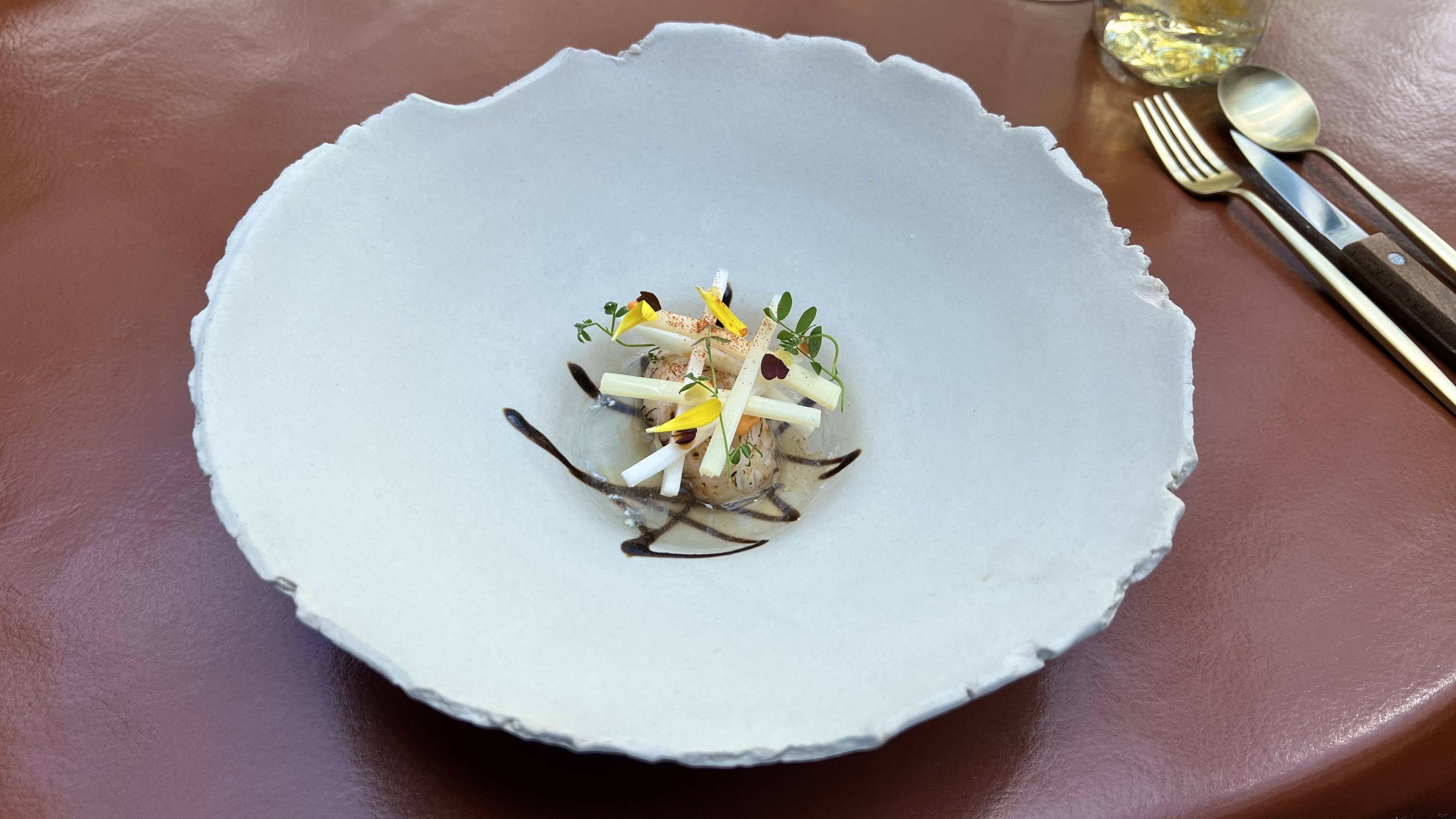 It was paired well with an oyster with blood sausage and kefir. The oyster was very delicate and elegant.