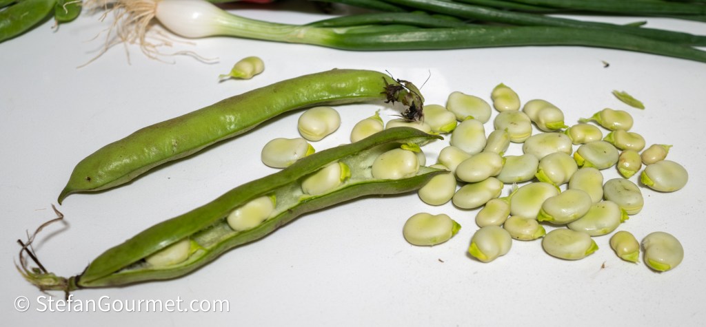 - 500 grams (1.1 lbs) fava beans in the pod