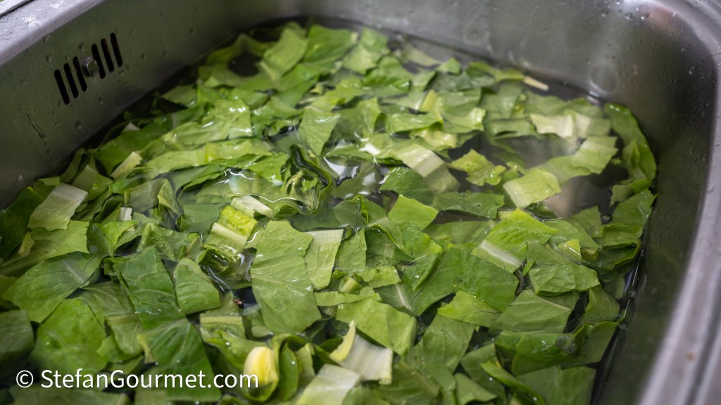 Slice the Romaine lettuce into strips and wash and dry them.