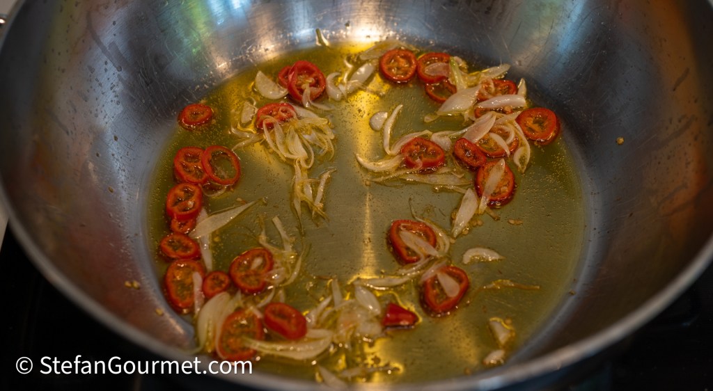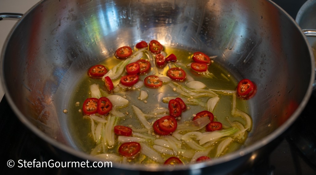 When the onion and chili is slightly golden…
