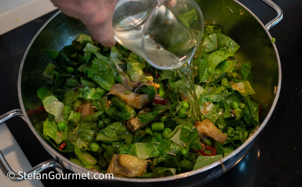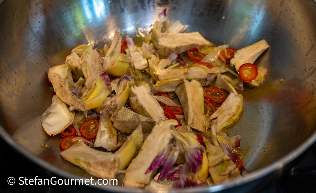 …add the artichokes. Stir for 4 minutes over medium heat.