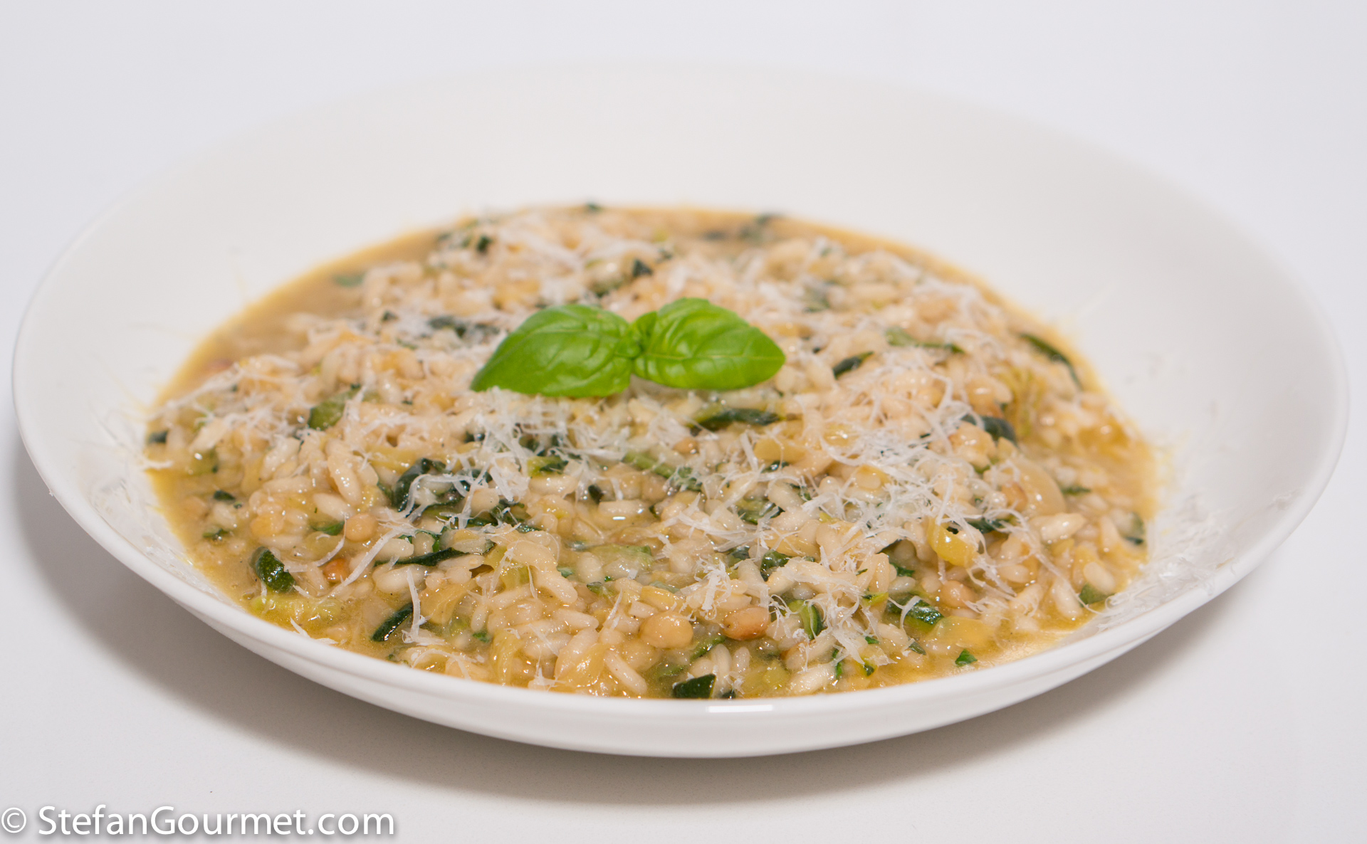 Another dish with zucchini and one that I love very much: risotto with zucchini, basil, and pine nuts.