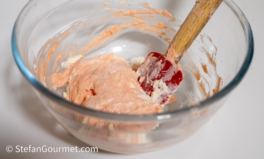 Place the salmon and ricotta mixture in a bowl and fold the whipped cream gently into the salmon mixture in 3 or 4 additions with a silicon spatula.