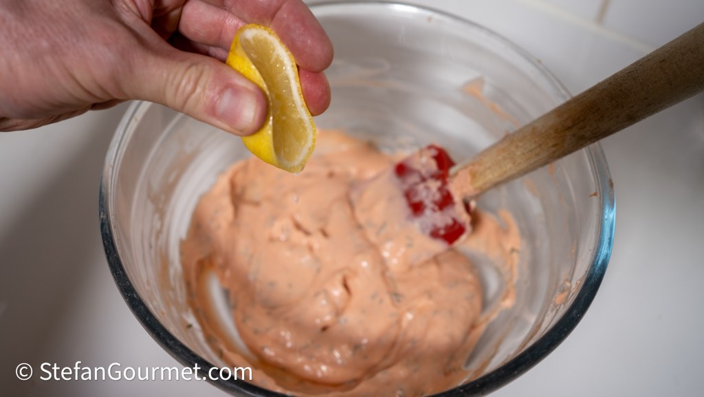 Add freshly squeezed lemon juice to taste. I used only 1 or 2 teaspoons.