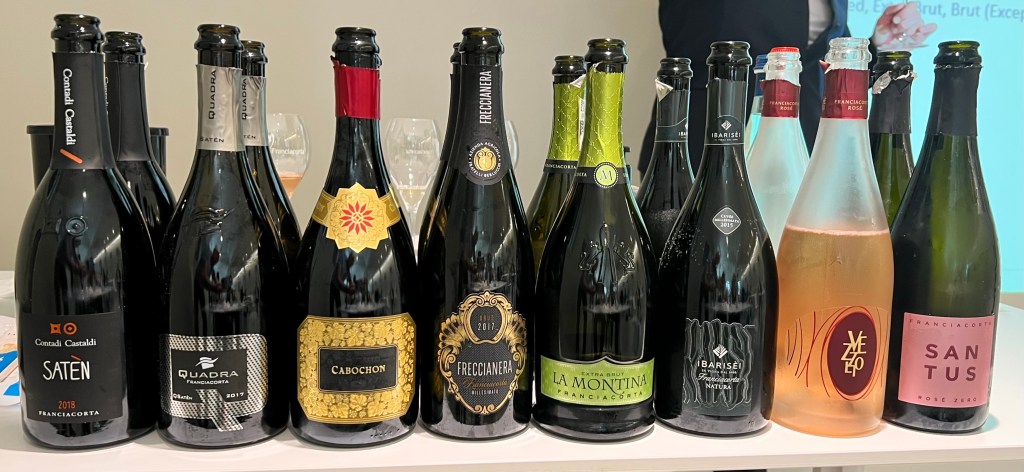 - Fratelli Berlucchi Brut Freccia Nera 2017, 60% Chardonnay, 30% Pinot Bianco, 10% Pinot Nero, fermented in steel, 60 months on the lees, 7.5 g/l. Mineral, crispy nose but creamy taste, complex with a long finish.