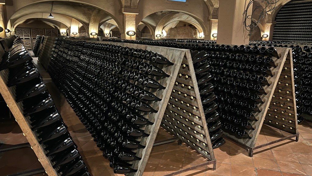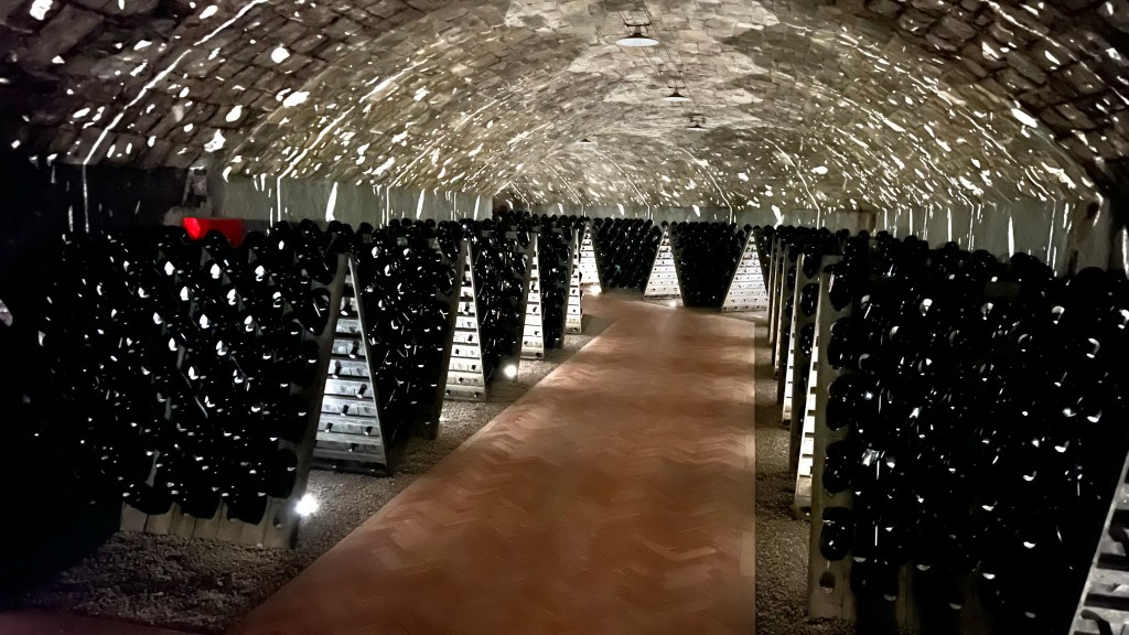 There is 1 kilometer (3,300 feet) of underground tunnels to age 6 million bottles.