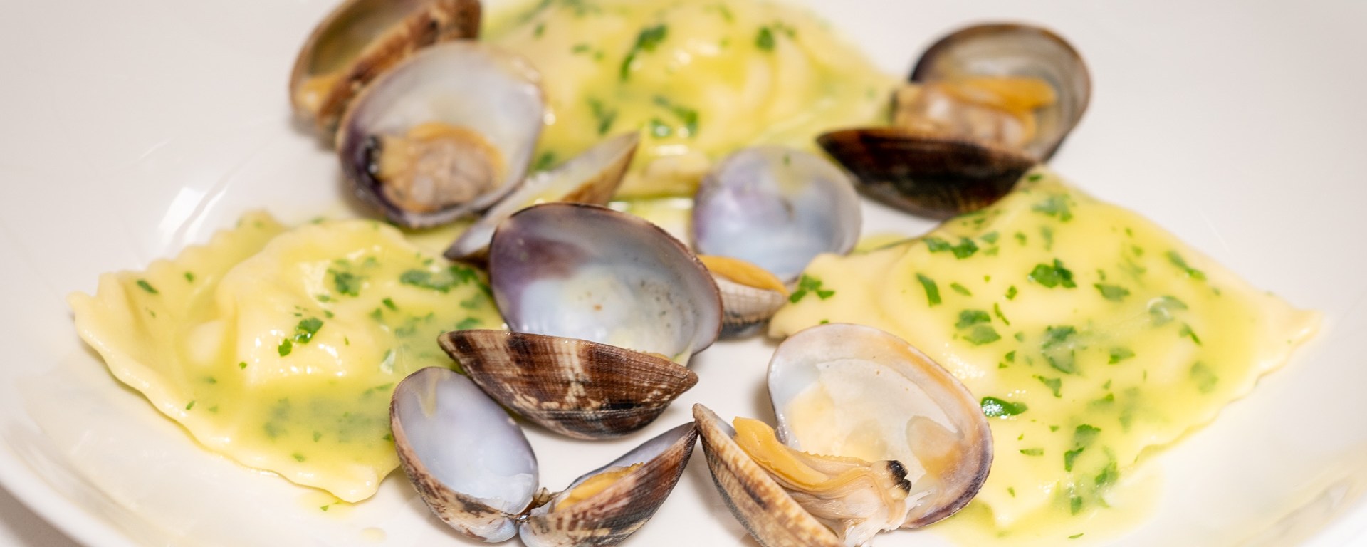 Serve the ravioli at once on preheated plates, garnished with the clams.