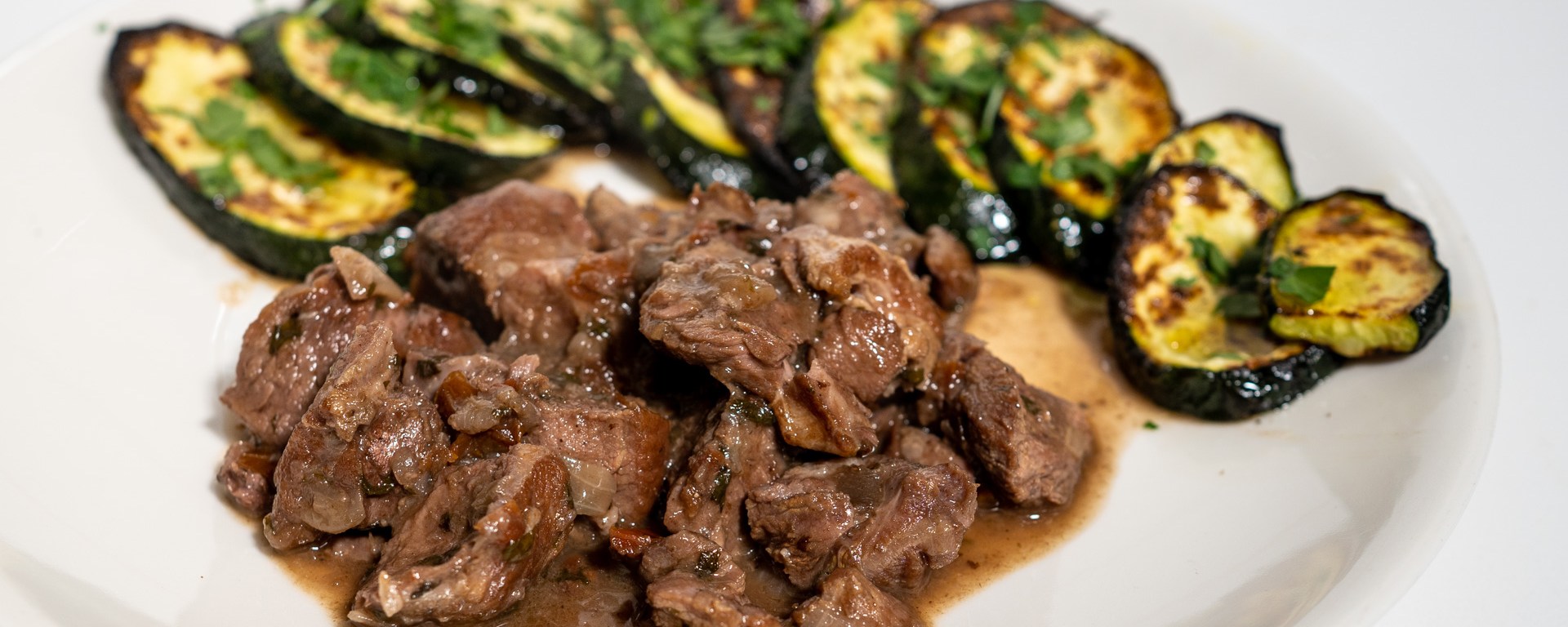 Serve the braised mutton on preheated plates. I served it with a side of grilled zucchini.
