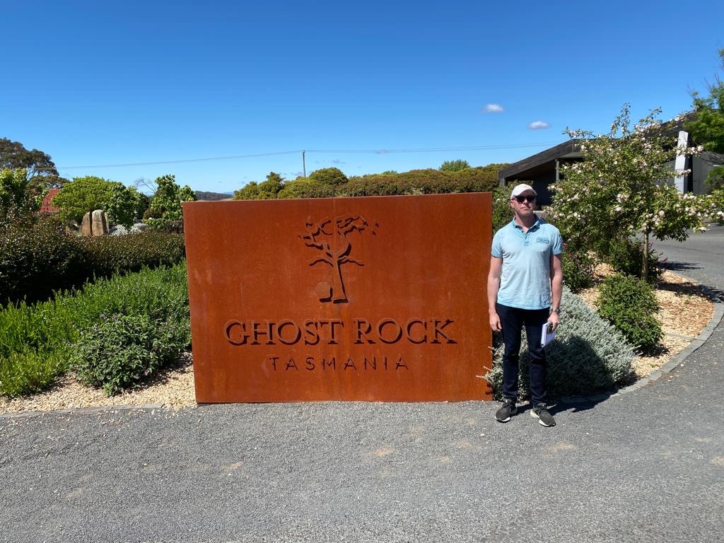 The final state of Australia we visited on our tour is Tasmania. After a flight from Melbourne in a small aeroplane we got on our tour bus and drove to Ghost Rock, where we were welcomed by owner Justin Arnold. To start he took us for a stroll in his vineyards and told us about the winery as well as the Tassie wine scene in general.