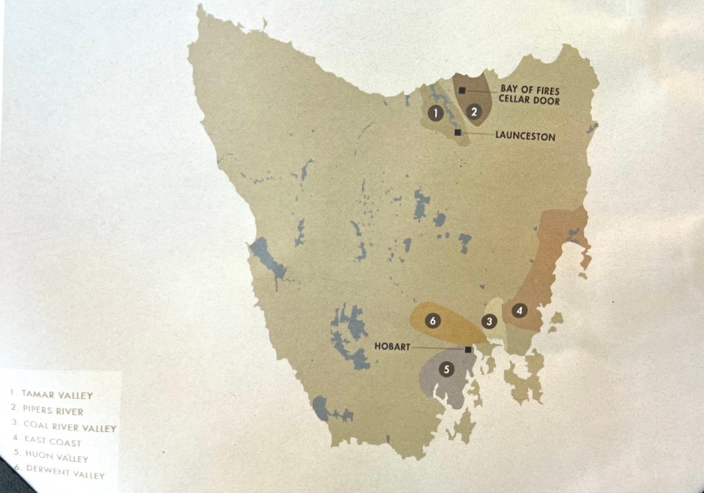 Tasmania produces less than 1% of the volume of Australian wine in volume, but about 5% of the value. It only has some 2,800 ha of vineyards, but has grown considerably from only 500 ha in 2000. The wineries are predominantly family-run. Viticulturists used to bring their grapes to a few central facilities and get them back as bottled wine, but now more and more have their own winery. There are about 25 wineries in Tasmania. All of Tastmania is one wine region, even though their are clear subregions (north, east, south). Tasmania is an agricultural state, so the wineries mostly focus on growing the best fruit (rather than fixing bad fruit in the cellar). Pinot Noir is the main grape variety of Tasmania. The climate used to be too cool, but thanks to global warming it is now the sweet spot for Pinot Noir. The west of Tasmania gets a lot of rain, up to 4 meters, whereas the east gets only .4 meters. This is why irrigation is needed to bring the water from the west to where the vineyards are. The east of Tasmania is more impacted by the weather patterns of El Niño/La Niña than the north.