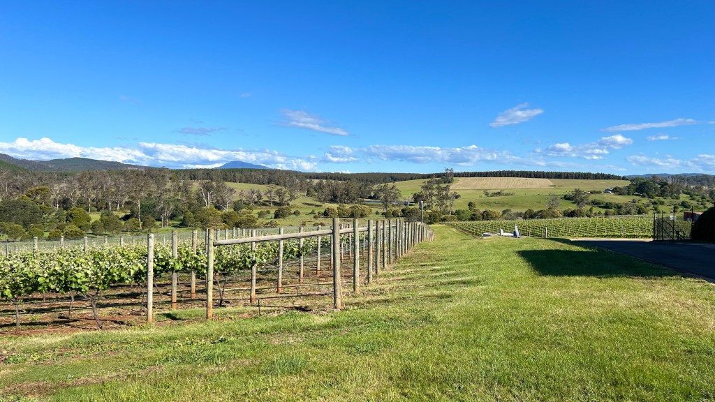To compensate for the fertile soil, the vines are planted further apart and with a higher fruiting line. This gives more space to the sea breeze, which helps to keep the grapes dry and to keep the vigor of the vines in check. This vineyards in the North of Tasmania are the latest to be picked, because the South is warmer than the North (in summer — in the winter it’s the other way around).
