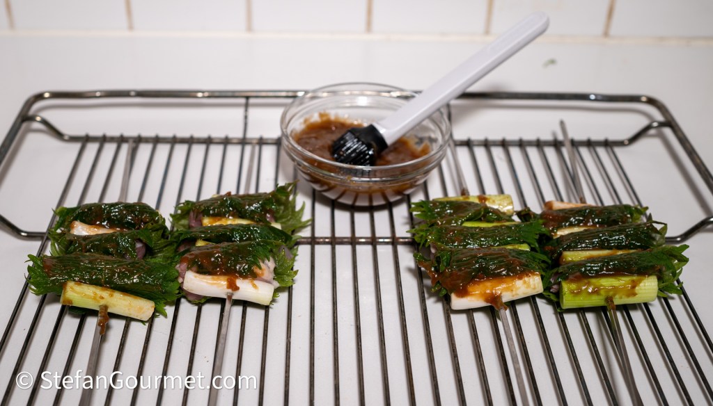 Brush the skewers with the umeboshi mixture on the top.