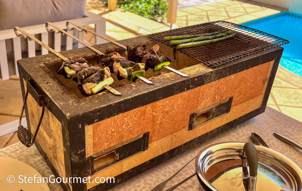 Wow! Mark has some serious skewers! Unless the scale of the photo is off for me…. I bought Shiso seeds after enjoying them in Korea. I hope they grow well! Great dish.