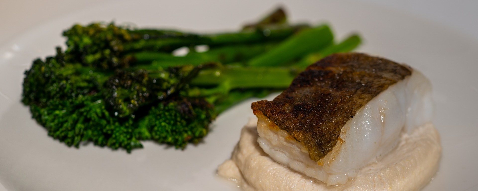Did you know macadamia nuts are produced in Tasmania? I didn’t, but I found out when I visted Tasmania and had blue eye trevalla (a local fish) with macadamia butter and broccolini at restaurant Aløft. I really liked the combination, so I decided to make something similar at home. Blue eye trevalla is not available here, but I thought it was pretty similar to cod, and so that is what I used. This dish will work well with any white fish. Halibut or sea bass are also great options, or sea bass prepared sous vide in this manner. The combination of the creamy, salty, and lemony macademias with the crispy broccolini and tender succulent fish is wonderful.