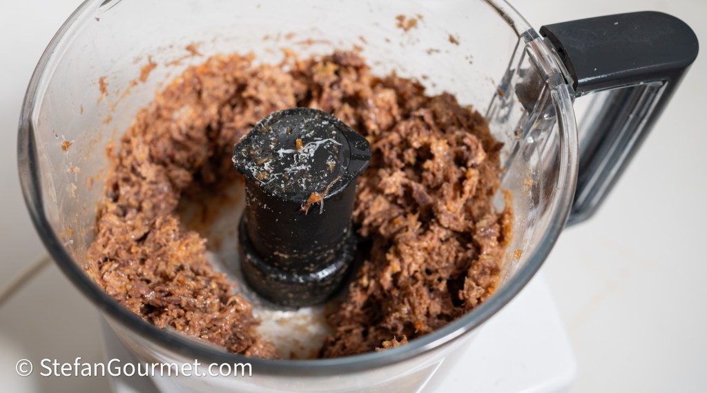 Process using the “pulse” function of the food processor until the meat is minced but not pureed.